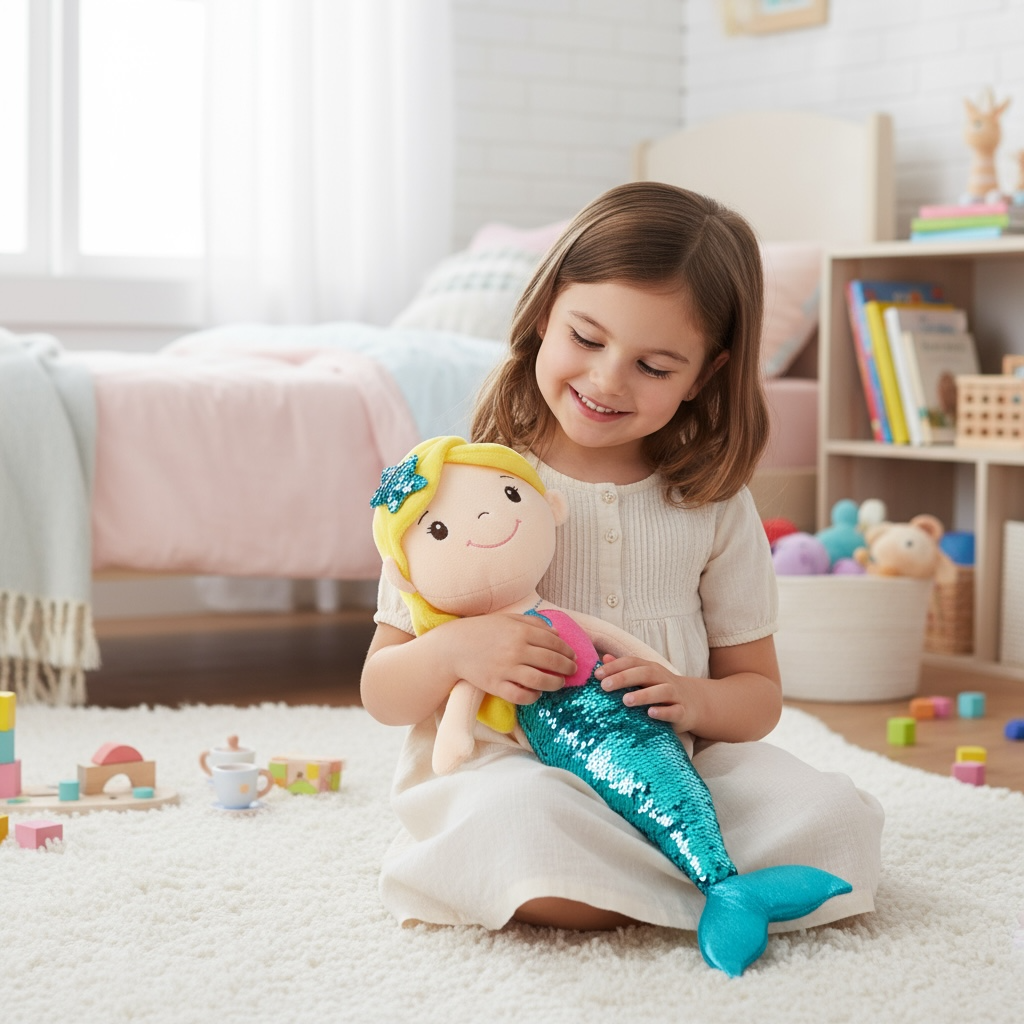 Muñeca Sirena 50cm Cola Azul